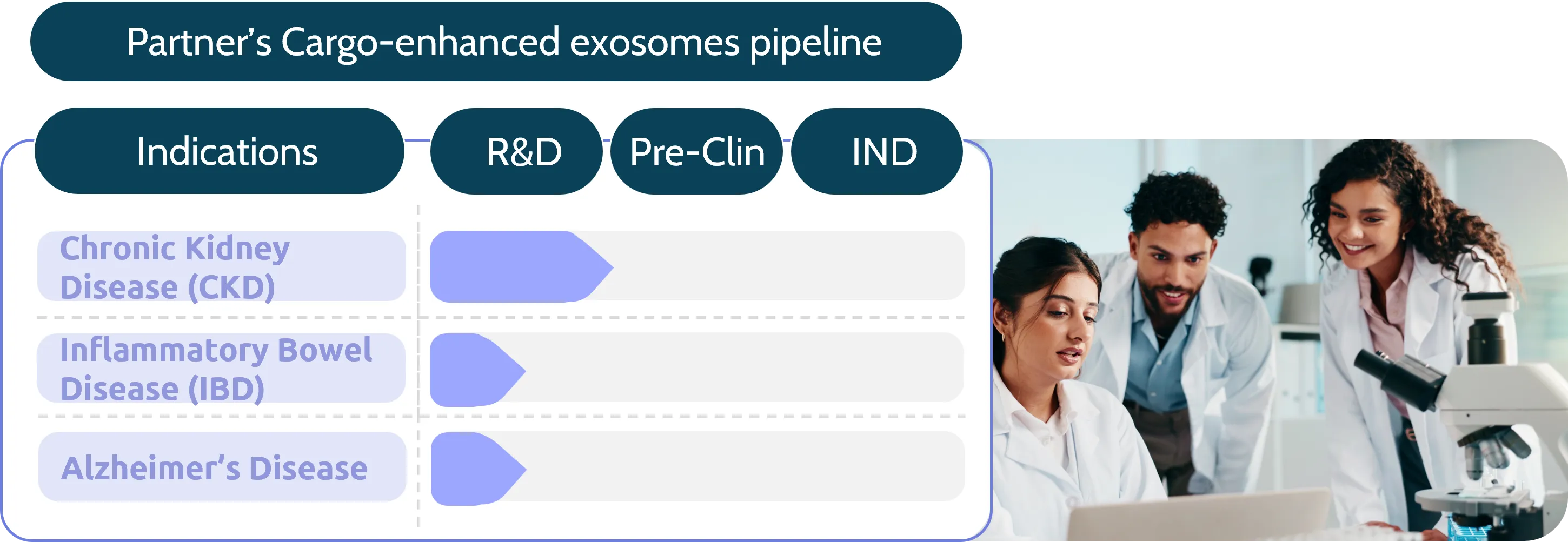Our lead programs focus on osteoarthritis (EXOSTEO01) and dermatological conditions (DERMEXO01), with a path toward first-in-human studies.